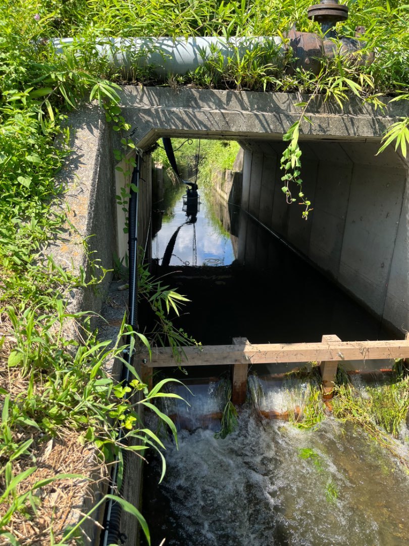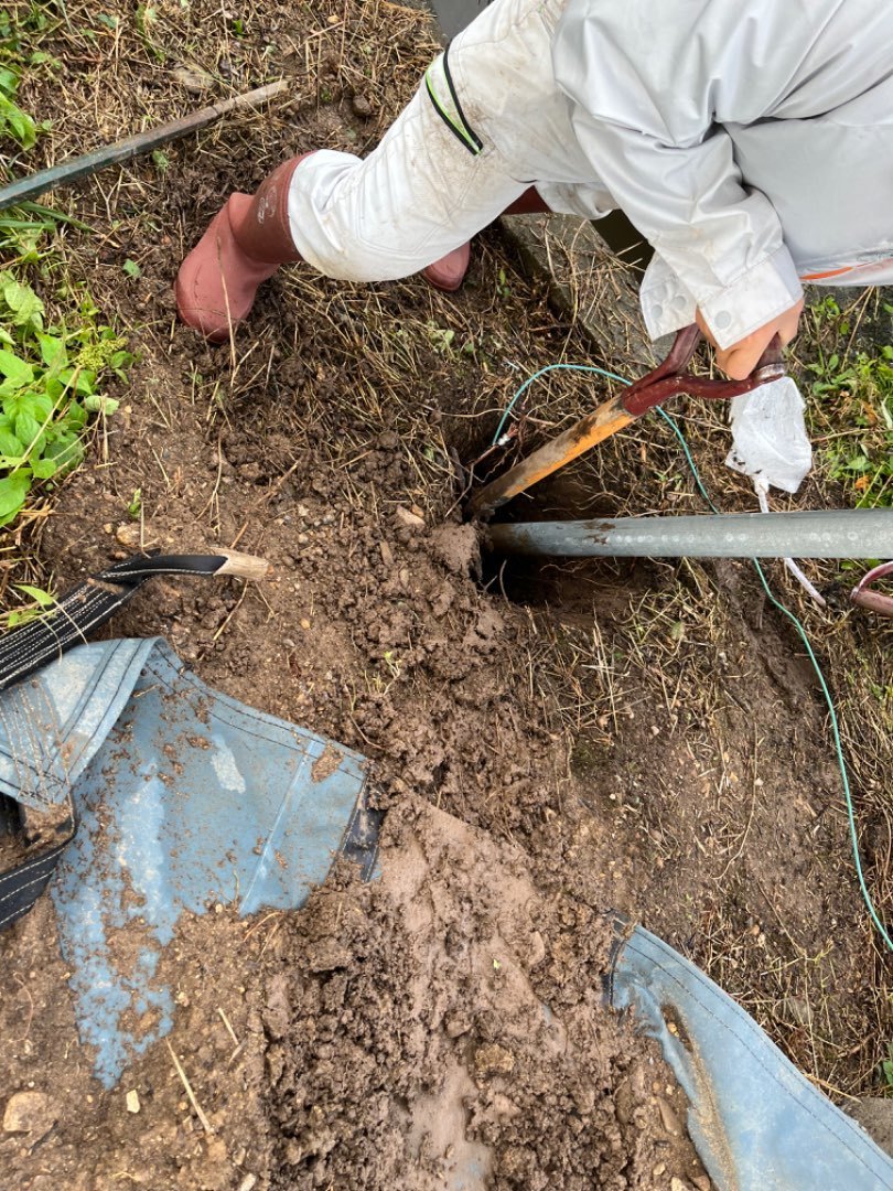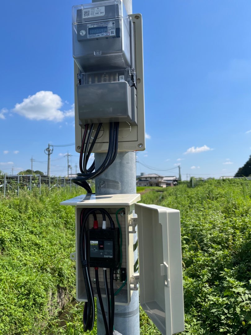 電柱付近に引込柱を設置してポンプまで配線しました。