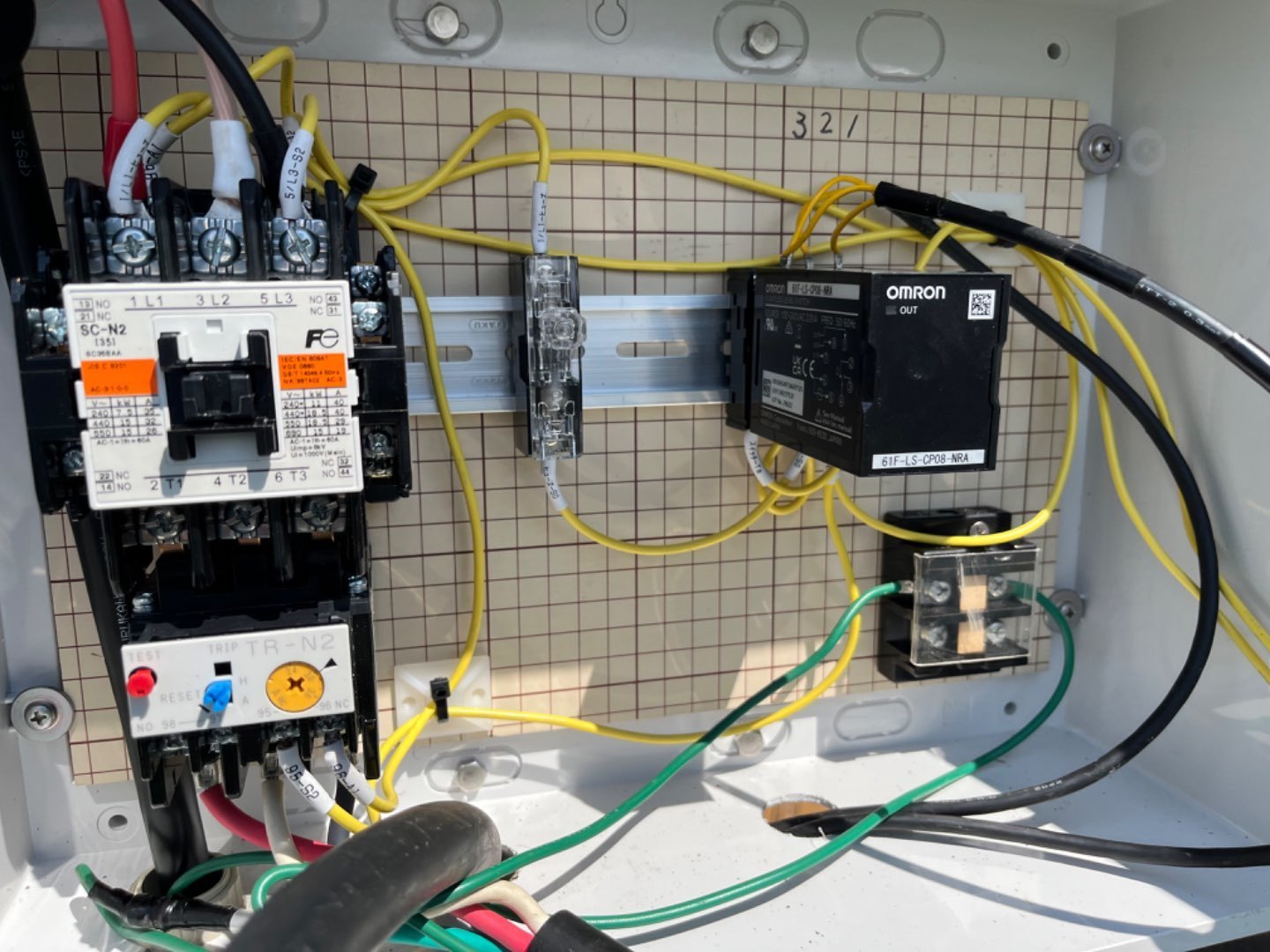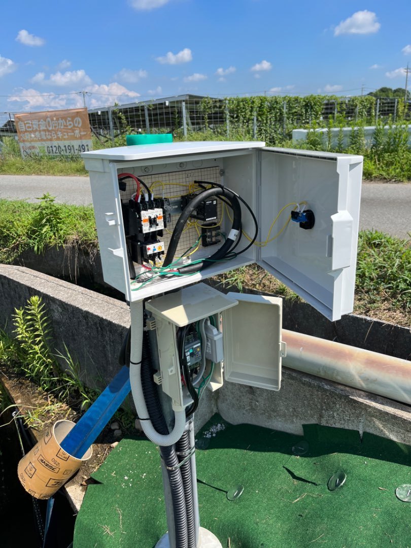 各拠点にブレーカーを設置、ポンプ側にはフロートスイッチの回路も作成しました。
